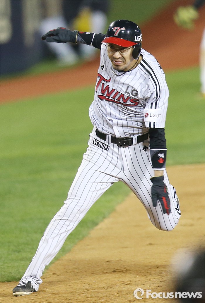 (서울=포커스뉴스) 29일 서울 잠실구장에서 열린 2016 프로야구 kt-LG 경기 7회말 1사 만루에서 LG 이병규의 우전 안타때 1루주자 정성훈이 3루를 돌아 홈으로 뛰다 멈추고 있다.