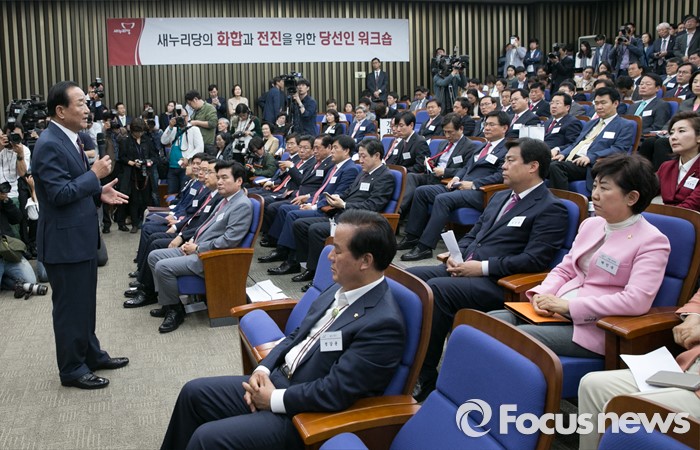 (서울=포커스뉴스) 서청원 새누리당 의원이 26일 오전 서울 여의도 국회에서 열린 당선자 워크숍에 참석해, 당선자 대표 인사말을 하고 있다.