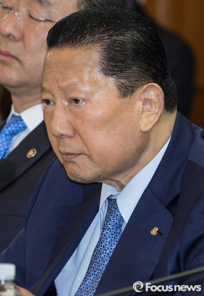 (서울=포커스뉴스) 29일 오전 서울 종로구 정부서울청사에서 열린 평창동계올림픽지원위원회에서 김정행 대한체육회장이 황교안 국무총리의 모두발언을 듣고 있다.