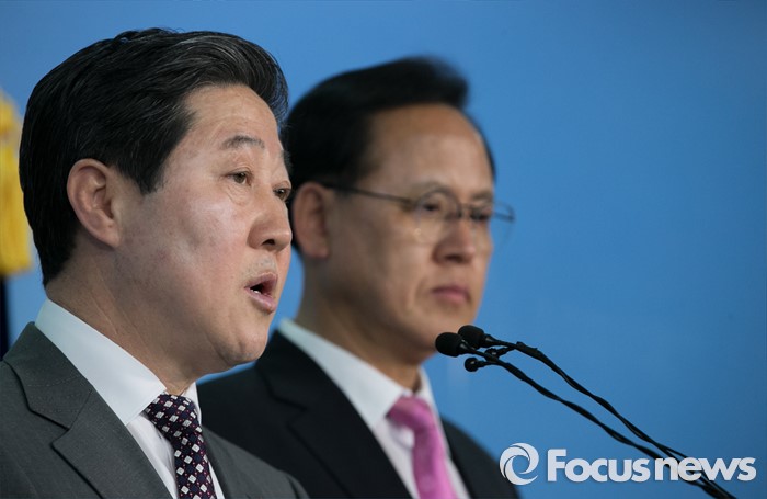 | △ 출마 회견하는 유기준-이명수 |