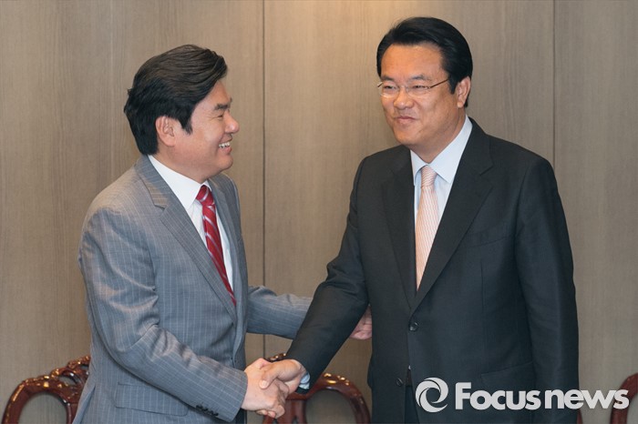 정 당선인은 이날 오전 서울 여의도 국회 새누리당 원내대표실을 찾아 원유철 대행과 만나 20분 정도 대화를 나눴다.