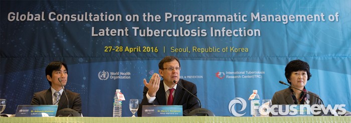 (서울=포커스뉴스) 27일 오전 서울 중구 프레지던트호텔에서 열린 'WHO 국제회의 기자 간담회'에서 마리오 라빌리오네 세계보건기구 결핵국장이 취재진의 질문에 답변을 하고 있다.