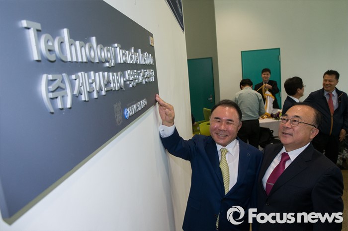 (서울=포커스뉴스) 25일 오전 서울 관악구 서울대학교 수의과대학 생명공학 연구동에서 열린 서울대-BBQ 공동연구 조인식에서 윤홍근(왼쪽) 제너시스비비큐 그룹 회장과 박용호 서울대 수의과대학 교수가 기념촬영을 하고 있다.