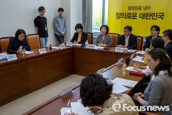 (서울=포커스뉴스) 심상정(왼쪽 세 번째) 정의당 상임대표가 2일 오전 서울 여의도 국회에서 열린 '테러방지법 관련 시민단체 간담회'에서 모두발언 하고 있다.