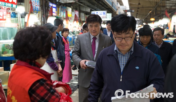 (서울=포커스뉴스) 27일 오전 서울 동작구 노량진 수산시장에서 법원 공무원들이 점유이전금지 가처분 집행을 위해 점포를 확인하고 있다.