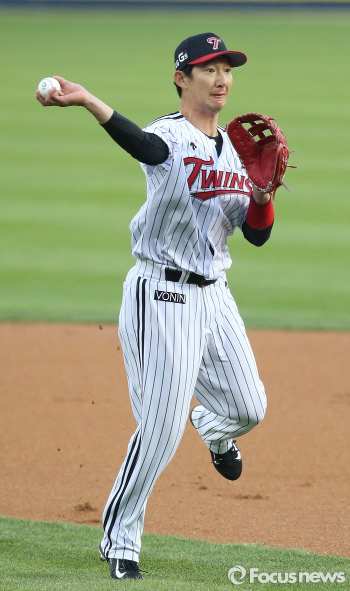 | △ LG 2루수 손주인의 송구 |