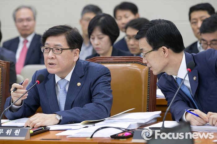 (서울=포커스뉴스) 정진엽(왼쪽) 보건복지부 장관이 29일 오후 서울 여의도 국회에서 지카바이러스와 관련해 의원질의에 답변하는 동안, 방문규 차관이 정 장관을 보고 있다.