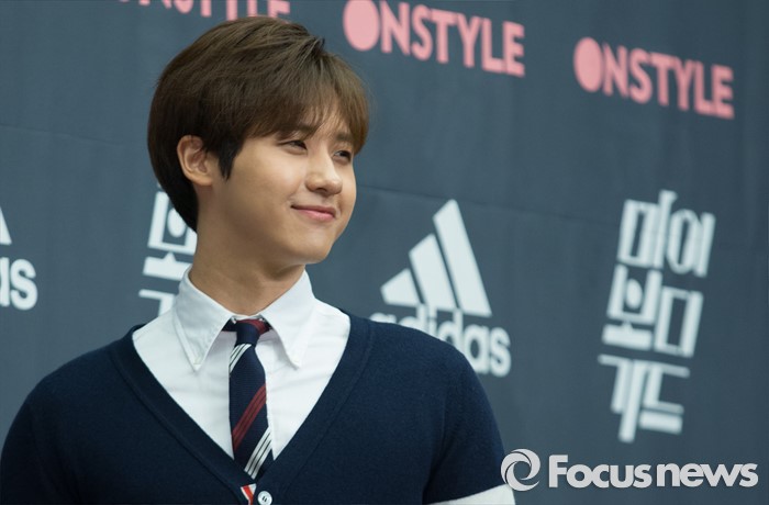 (서울=포커스뉴스) 26일 오전 서울 마포구 스탠포드 호텔에서 열린 온스타일 '마이 보디가드' 제작발표회에 참석한 가수 신우가 포토타임을 갖고 있다.
