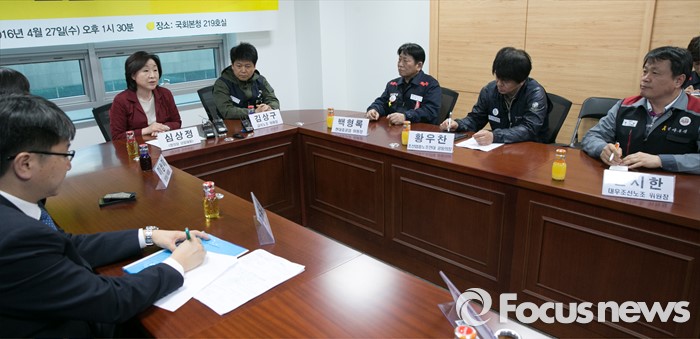 (서울=포커스뉴스) 심상정(왼쪽 두번째) 정의당 대표가 27일 오후 서울 여의도 국회 의원회관에서 조선업종 구조조정 긴급현안 간담회에 참석해, 모두발언하고 있다.