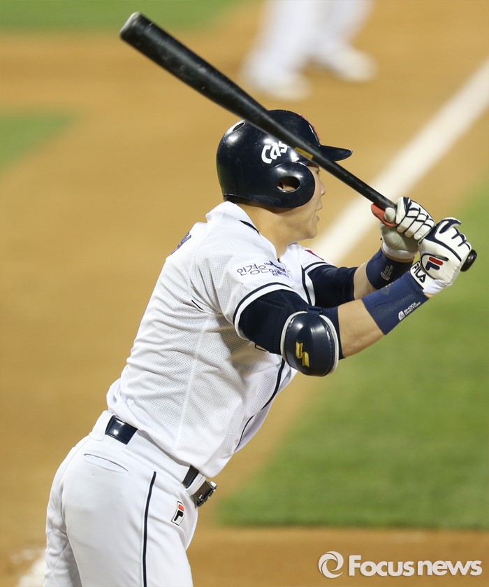 (서울=포커스뉴스) 26일 서울 잠실구장에서 열린 2016 프로야구 SK-두산 경기 6회말 무사 만루에서 두산 대타 박세혁이 2타점 우익수 오른쪽에 떨어지는 2루타를 치고 있다.