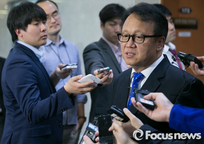 (서울=포커스뉴스) 민병두 더불어민주당 의원이 29일 오후 서울 여의도 국회 정론관에서 원내대표 출마 기자회견을 마친 뒤 취재진 질문에 답하고 있다.