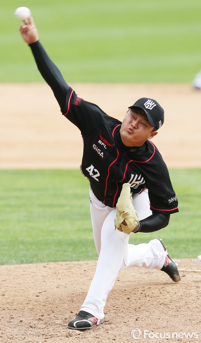 (서울=포커스뉴스) 1일 서울 잠실구장에서 열린 2016 프로야구 kt-LG 경기에서 kt 투수 홍성무가 3회말 2사 2루 상황에서 마운드에 올라 투구하고 있다.