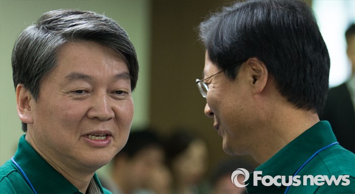 (양평=포커스뉴스) 안철수(왼쪽) 국민의당 상임공동대표와 천정배 공동대표가 26일 오후 경기도 양평 한화리조트에서 열린 20대 총선 당선인 워크숍에 참석하고 있다.