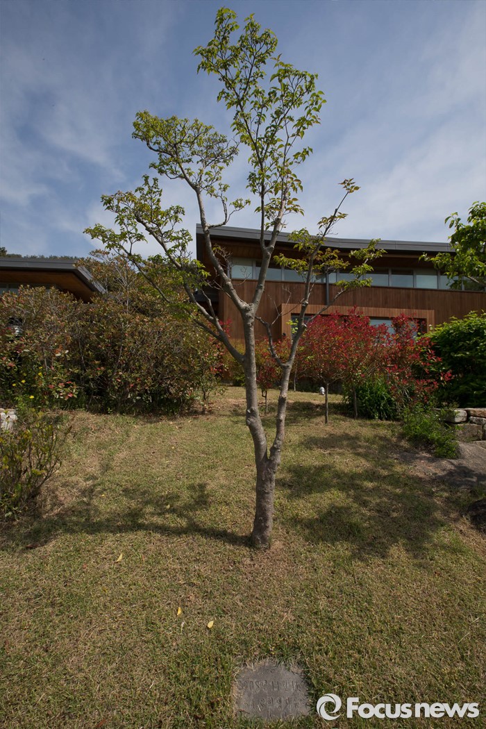 (김해=포커스뉴스) 고 노무현 전 대통령 서거 7주기를 앞두고 1일 오전 노 전 대통령의 사저가 공개되고 있다. 사저 정원에 4.3유족회가 노 전 대통령에게 보낸 산딸나무가 자리잡고 있다.