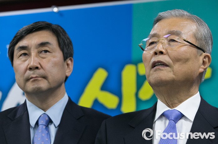 (광주=포커스뉴스) 김종인 더불어민주당 비대위 대표가 25일 오후 광주광역시의회 브리핑룸에서 광주 및 전남 언론사 기자간담회를 하고 있다. 왼쪽은 이종걸 원내대표.
