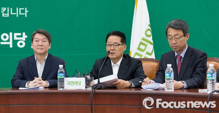 (서울=포커스뉴스) 박지원(가운데) 국민의다 원내대표가 29일 오전 서울 여의도 국회에서 최고위원회의에 참석해 모두발언을 하고 있다.
