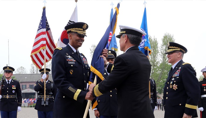 | △ 주한미군기 전달 받는 신임 한·미연합사령관 |