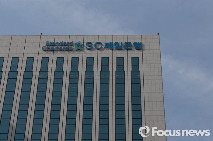 (서울=포커스뉴스) 지난 6일 SC제일은행은 브랜드명의를 '한국SC은행'에서 'SC제일은행'으로 바꿨다. 28일 오후 서울 종로구 SC제일은행 본점 외벽에 새로운 간판이 걸려있다.
