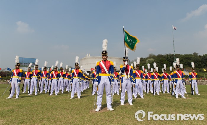 (서울=포커스뉴스) 29일 오후 서울 노원구 육군사관학교에서 열린 개교 70주년 기념식에서 생도들이 도열하고 있다.