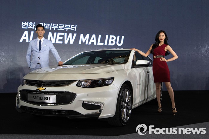 (서울=포커스뉴스) 27일 오전 서울 구로구 고척스카이돔에서 열린 한국지엠 '올 뉴 말리부' 신차 발표회에서 모델들이 포즈를 취하고 있다.