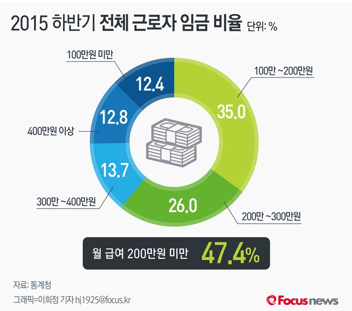 | △ [그래픽] 2015 하반기 전체 취업자 임금 비율 |