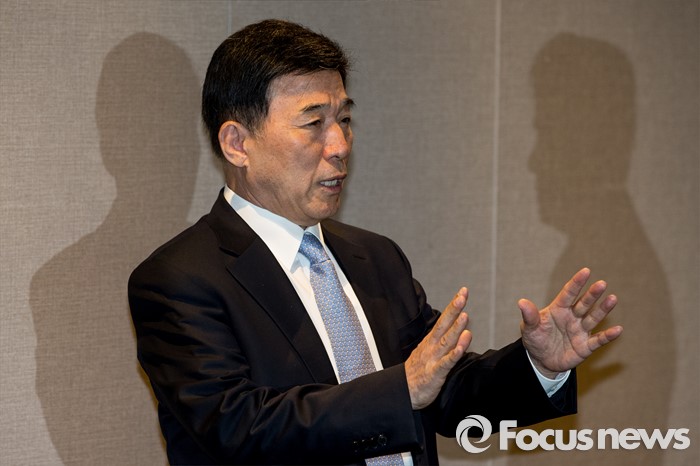 (서울=포커스뉴스) 26일 오전 서울 중구 더플라자에서 열린 '산업부 장관-10대 그룹 간담회'에서 서용원 한진 사장이 참석자들과 대화를 나누고 있다.