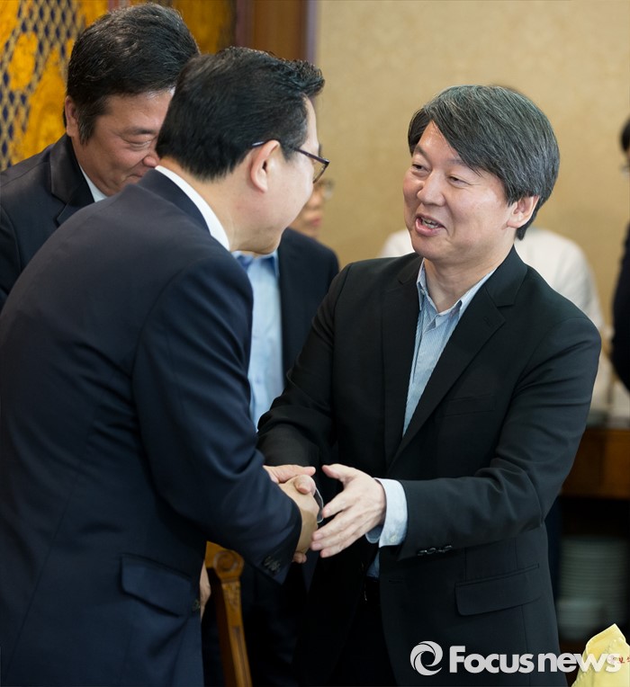 (서울=포커스뉴스) 안철수 국민의당 상임공동대표가 25일 오후 서울 영등포구의 한 중식당에서 제20대 국회의원 선거 서울지역 출마자들과 오찬간담회에 앞서 인사를 나누고 있다.