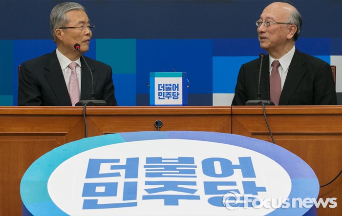 (서울=포커스뉴스) 김종인(왼쪽) 더불어민주당 비대위 대표가 26일 오후 서울 여의도 국회를 방문한 벳쇼 코로 주한일본대사와 만나 환담을 하고 있다.