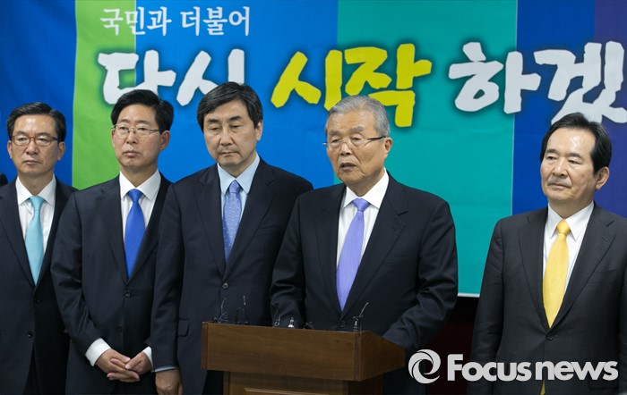 (광주=포커스뉴스) 김종인 더불어민주당 비대위 대표가 25일 오후 광주광역시의회 브리핑룸에서 광주 및 전남 언론사 기자간담회를 하고 있다. 왼쪽부터 정성호, 양승조 비대위원, 이종걸 원내대표, 김 대표, 정세균 의원.