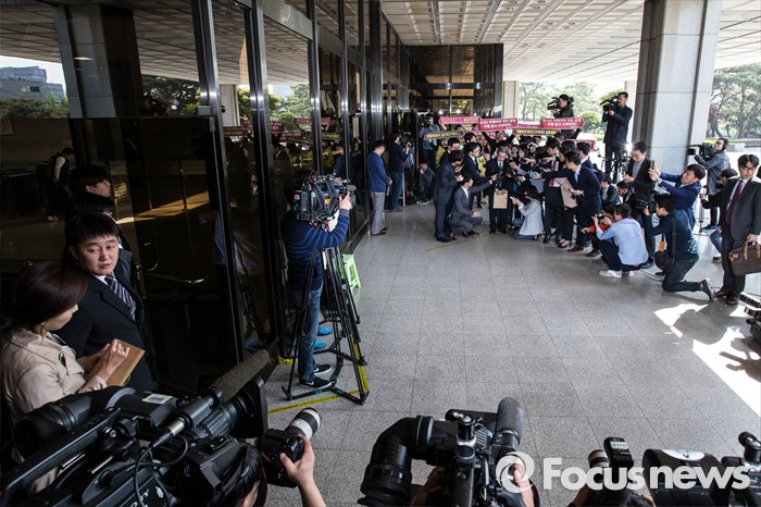(서울=포커스뉴스) 가습기 살균제 과실 책임을 받고 있는 신현우 전 옥시 대표가 피의자 신분으로 26일 오전 서울 서초구 서울중앙지방검찰청에 출두하고 있다.