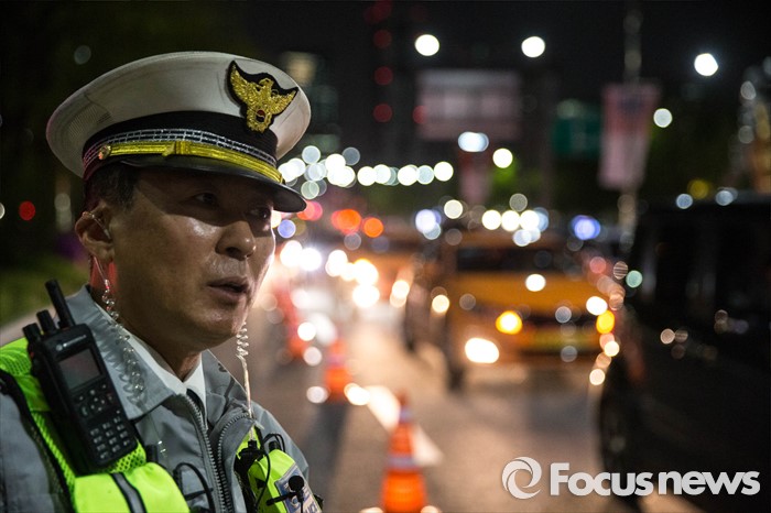 (서울=포커스뉴스) 대검찰청과 경찰청이 음주운전 근절을 위한 '음주운전사범 단속 및 처벌 강화 방안'을 시행한 25일 오후 서울 송파구 인근에서 경찰이 음주단속을 하고 있다.