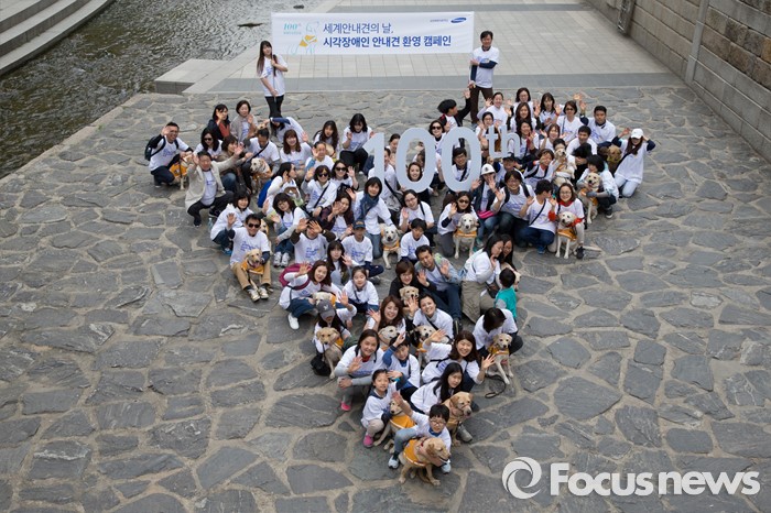 (서울=포커스뉴스) 27일 오전 서울 청계천에서 삼성화재안내견학교 훈련사들과 안내견들이 시민들과 함께 '안내견과의 만남' 행사를 하고 있다.