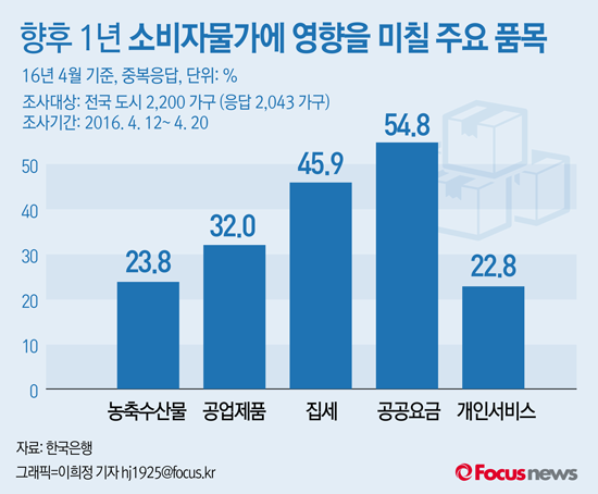 | △ [그래픽] 향후 1년 소비자물가에 영향을 미칠 주요 품목 |