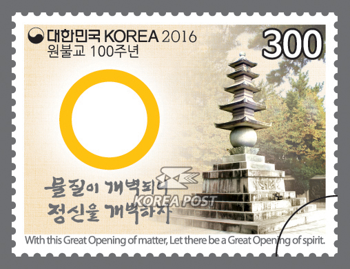 한편, 원불교는 올해 새로운 미래를 준비하고자 '세상과의 소통 및 희망 나눔, 새로운 미래를 향한 비전 선포'를 목표로 지난 25일부터 5월1일까지 원불교 100주년 기념대회와 학술 대회 등의 각종 행사를 개최한다.원불교 100주년 기념우표 <사진제공=우정사업본부>