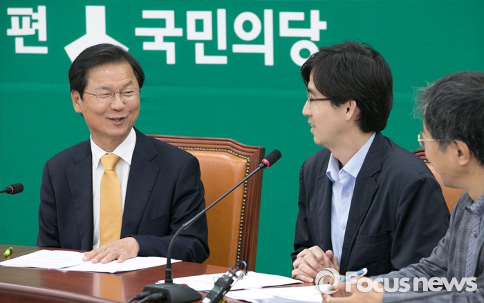(서울=포커스뉴스) 천정배(왼쪽) 국민의당 공동대표가 2일 오후 서울 여의도 국회에서 테러방지법 시행령(안) 관련 시민사회단체를 접견, 참석자들과 간담회를 하고 있다.