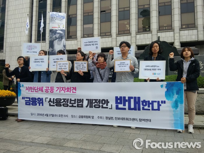 (서울=포커스뉴스) 시민단체들이 18일 금융위원회가 발표한 신용정보법 시행령 개정안을 반대하고 나섰다.