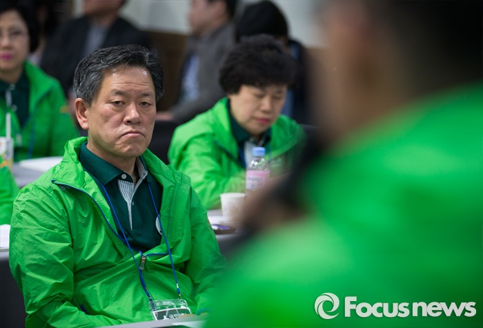 (양평=포커스뉴스) 27일 오전 경기도 양평 한화리조트에서 열린 국민의당 20대 총선 당선인 워크숍에 참석한 주승용 전 원내대표가 합의 추대된 박지원 신임 원내대표를 바라보고 있다.