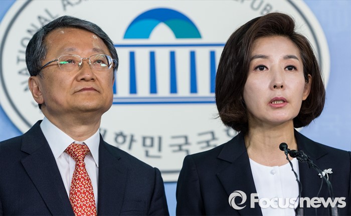 (서울=포커스뉴스) 새누리당 차기 원내대표 경선 후보등록 마감 예정일인 1일 오전 서울 여의도 국회 정론관에서 차기 원내대표 후보인 나경원 의원과 정책위의장 후보 김재경 의원이 출마 기자회견을 갖고 있다.