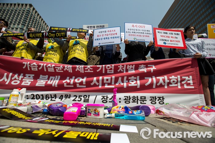 강찬호 가족모임 대표는 "대한민국의 거의 모든 소비자가 옥시를 알고 있고 옥시제품을 썼다고 해도 과언이 아니다"며 "평범한 소비자들이 안전하다는 표시를 믿고 가족의 건강을 챙기기 위해 제품을 구매한 게 엄청난 참사를 불렀다"고 말했다.