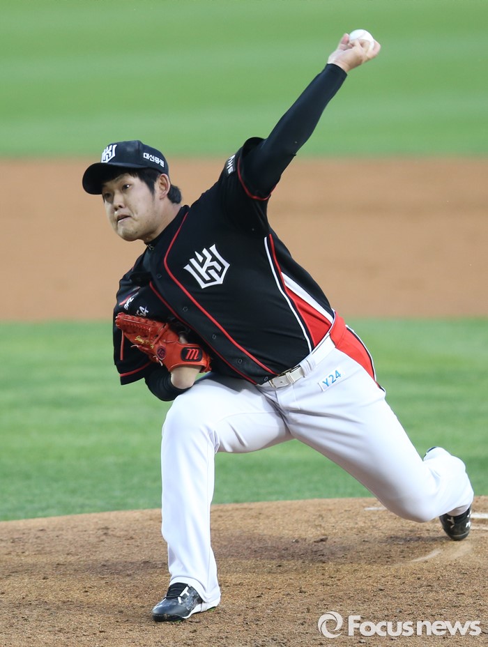 (서울=포커스뉴스) 29일 서울 잠실구장에서 열린 2016 프로야구 kt-LG 경기에서 1회말 kt 선발투수 정대현이 투구하고 있다.
