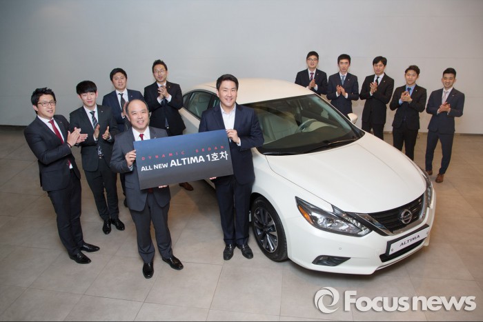 (서울=포커스뉴스) 한국닛산은 26일 닛산 강남 전시장에서 다이내믹 세단 올 뉴 알티마(All New Altima) 1호차 전달식을 갖고, 본격적인 고객 인도에 돌입했다고 27일 밝혔다.