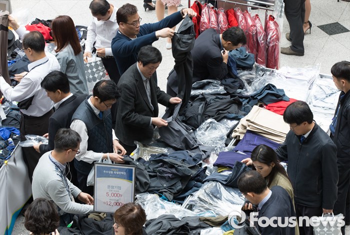 (대전=포커스뉴스) 28일 오전 정부대전청사 중앙홀에 마련된 개성공단 우수상품 특별판매전에서 공무원들이 제품을 살피고 있다. 개성공단 우수상품 특별판매전은 개성공단 입주기업 피해를 최소화 하기 위해 중소기업청이 주최했다.