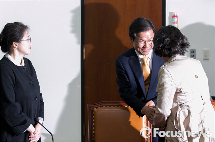 (서울=포커스뉴스) 천정배(가운데) 국민의당 공동대표가 2일 오후 서울 여의도 국회에서 테러방지법 시행령(안) 관련 시민사회단체를 접견, 간담회에 앞서 침석자들과 인사하고 있다.