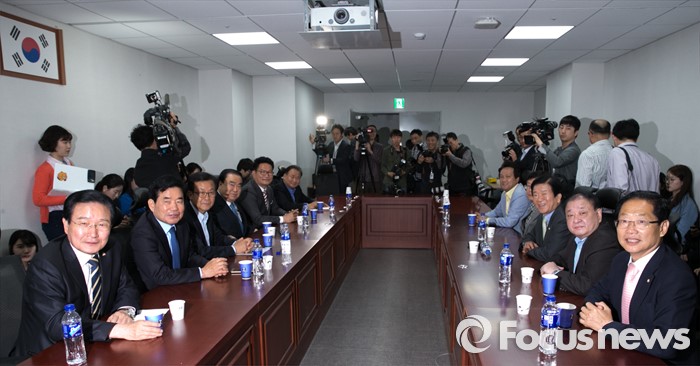 | △ 한 자리 모인 더민주 중진 의원들 |