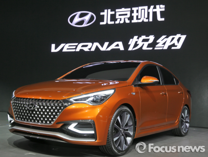 (서울=포커스뉴스) 현대자동차는 25일(현지시각) 중국 국제전람센터에서 열린 '2016 베이징 국제 모터쇼'에서 중국형 '베르나(현지명: 위에나)' 콘셉트 모델을 최초 공개했다고 밝혔다.