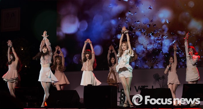 (서울=포커스뉴스) 25일 오후 서울 용산구 블루스퀘어 삼성홀에서 열린 걸그룹 러블리즈의 미니앨범 'A NEW TRILOGY' 발표 쇼케이스에 참석한 멤버들이 신곡 'Destiny' 의 무대를 선보이고 있다.