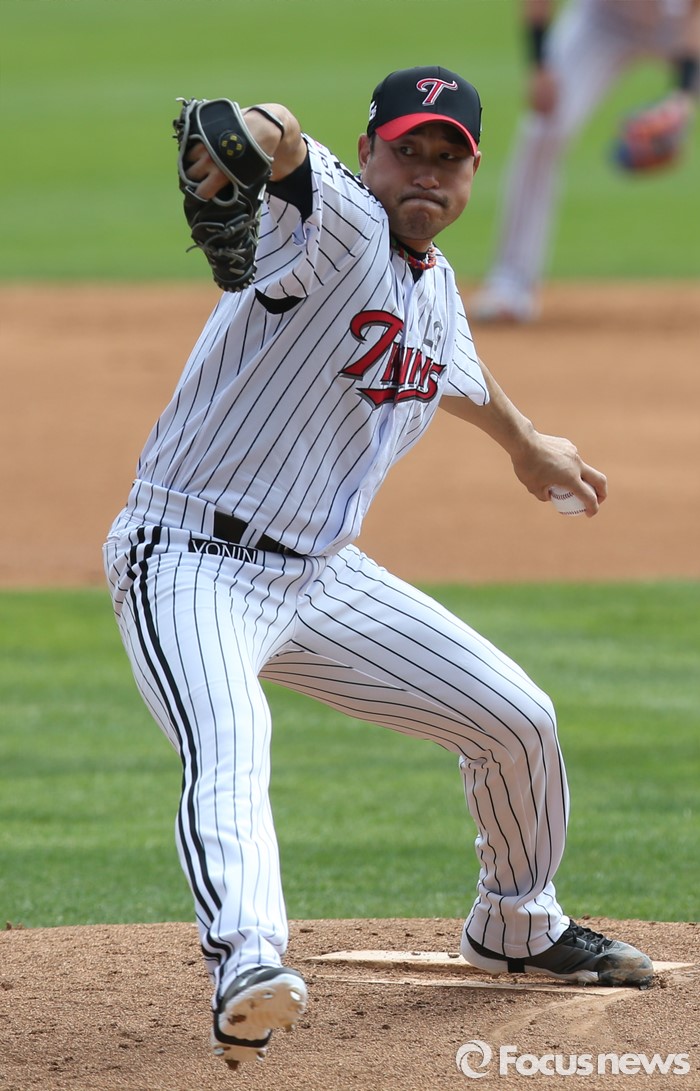 (서울=포커스뉴스) 1일 서울 잠실구장에서 열린 2016 프로야구 kt-LG 경기에서 1회초 LG 선발투수 봉중근이 투구하고 있다.