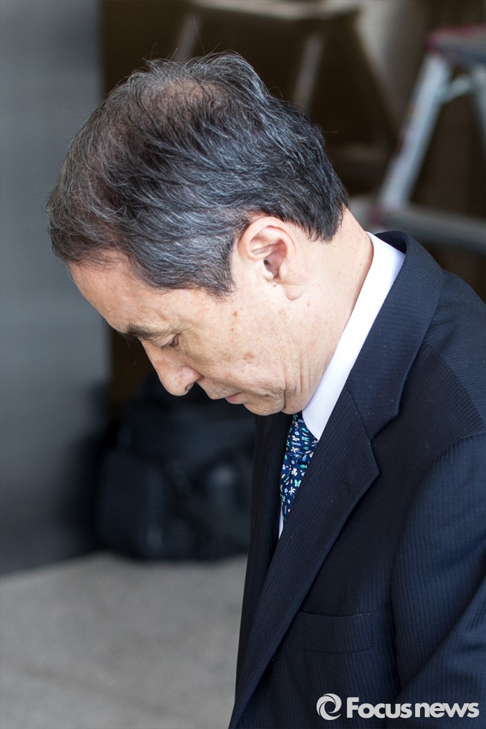 (서울=포커스뉴스) 수 많은 목숨을 앗아간 가습기 살균제가 만들어졌을 당시 옥시 최고경영자를 지낸 신현우 전 옥시 대표가 26일 오전 서울 서초구 서울중앙지검에 피의자 신분으로 출석 하고 있다.