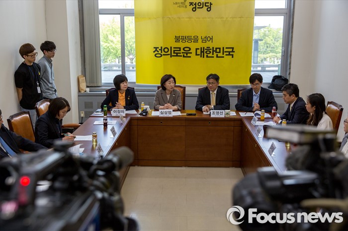 (서울=포커스뉴스) 심상정(왼쪽 세 번째) 정의당 상임대표가 2일 오전 서울 여의도 국회에서 열린 '테러방지법 관련 시민단체 간담회'에서 모두발언 하고 있다.
