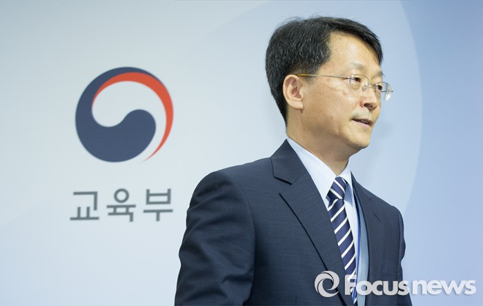 (세종=포커스뉴스) 이진석 교육부 학술장학지원관 2일 오전 세종시 정부세종청사 교육부 브리핑룸에서 법학전문대학원 입학실태조사 결과 발표를 마치고 단상에서 내려오고 있다.